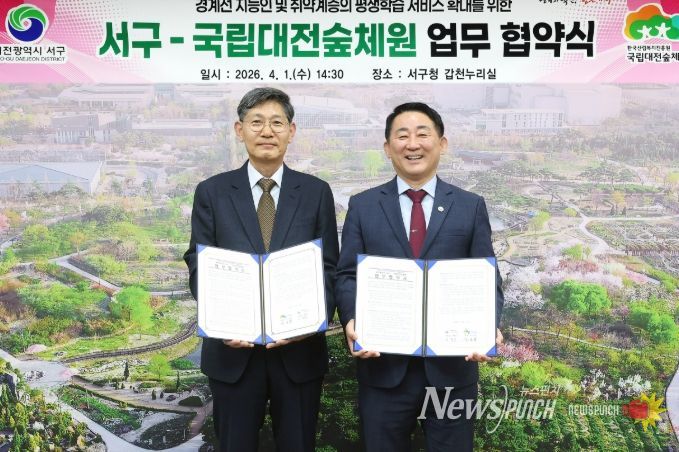 뉴스펀치 이현승 기자 | 대전 서구 평생학습원은 국립대전숲체원과 경계선 지능인 산림교육 평생학습 활성화를 위한 업무 협약을 체결했다고 2일 밝혔다.