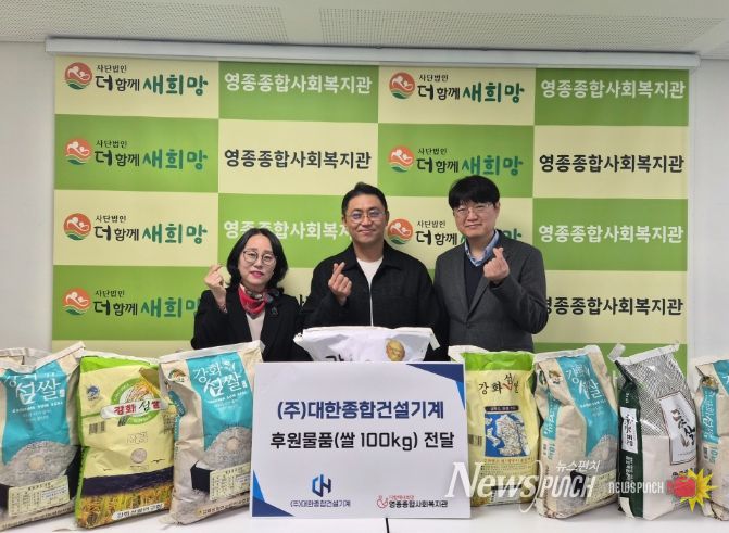 뉴스펀치 정홍균 기자 | 인천 중구 영종종합사회복지관은 최근 ‘㈜대한종합건설기계(대표이사 정광조)’에서 후원 물품 쌀 100kg을 전달하며, 이웃사랑 실천에 나섰다고 2일 밝혔다.