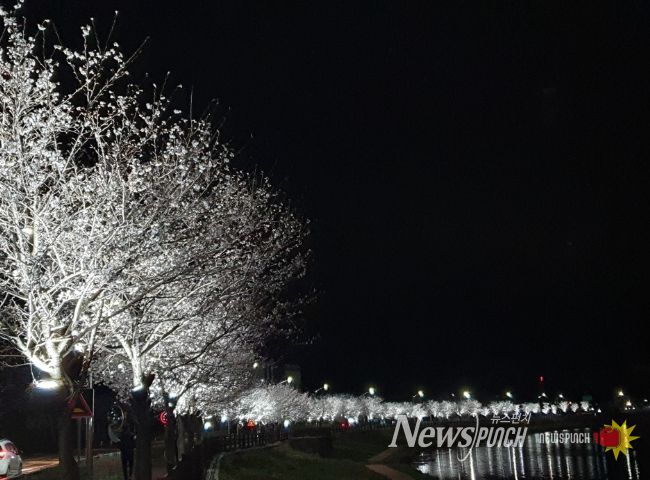 군은 단순한 조명 설치를 넘어 하천 주변 자연환경과 조화를 이루는 경관 연출에 중점을 두고 사업을 진행했다. 산책로 일대에는 연분홍과 화이트 계열 조명을 활용해 벚나무 경관을 정비했으며, 이를 통해 야간에도 밝고 안정적인 보행 여건을 마련했다.