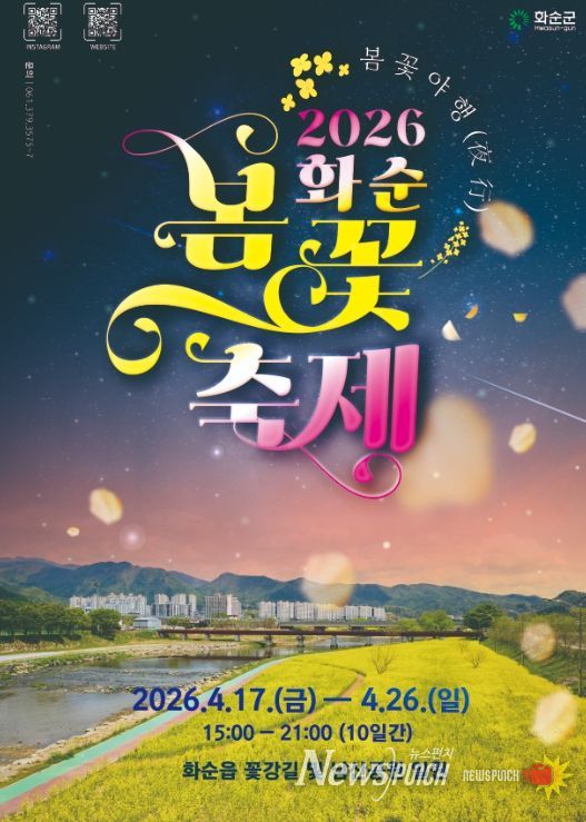 뉴스펀치 김용희 기자 | 화순군은 봄의 절정을 맞아 ‘2026 화순 봄꽃 축제’가 화순읍 꽃강길과 남산공원 일원에서 펼쳐진다고 밝혔다.