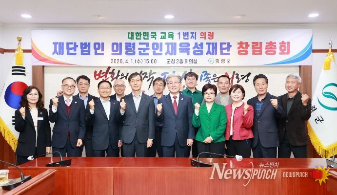 뉴스펀치 박세훈 기자 | 의령군은 지난 1일 지역 인재 육성과 교육 경쟁력 강화를 위한 ‘재단법인 의령군인재육성재단’ 창립총회를 열고 재단 설립의 출발을 알렸다고 밝혔다.