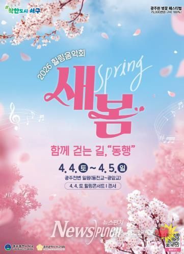뉴스펀치 김용희 기자 | 광주광역시 서구가 완연한 봄을 맞아 오는 4일과 5일 광주천변 (광천동~유덕동 광암교) 일원에서 ‘제4회 힐링음악회 새봄’을 개최한다.