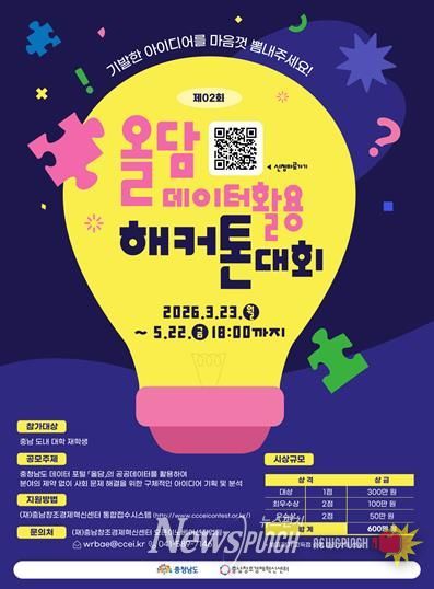 뉴스펀치 이현승 기자 | 충남창조경제혁신센터는 충남도내 대학 재학생을 대상으로 공공데이터를 활용한 창의적 아이디어 발굴을 위한 '제2회 올담 데이터 활용 해커톤' 참가자를 오는 5월 22일까지 모집한다고 밝혔다.