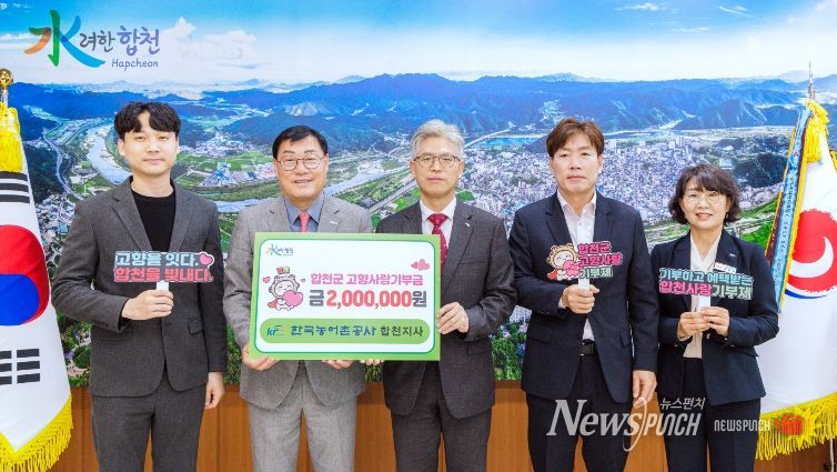 뉴스펀치 박세훈 기자 | 합천군은 4월 2일 군수실에서 한국농어촌공사 합천지사 직원들이 고향사랑기부금 200만 원을 기탁했다고 밝혔다.