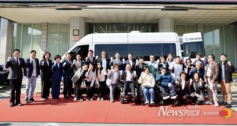 뉴스펀치 박세훈 기자 | 김해시는 지난 2일 시청 본관 앞에서 장애인의 이동권과 지역사회참여 확대를 위해 도입한 미니 휠체어 버스 ‘가야나래(1대)’의 개통식을 개최했다고 3일 밝혔다.