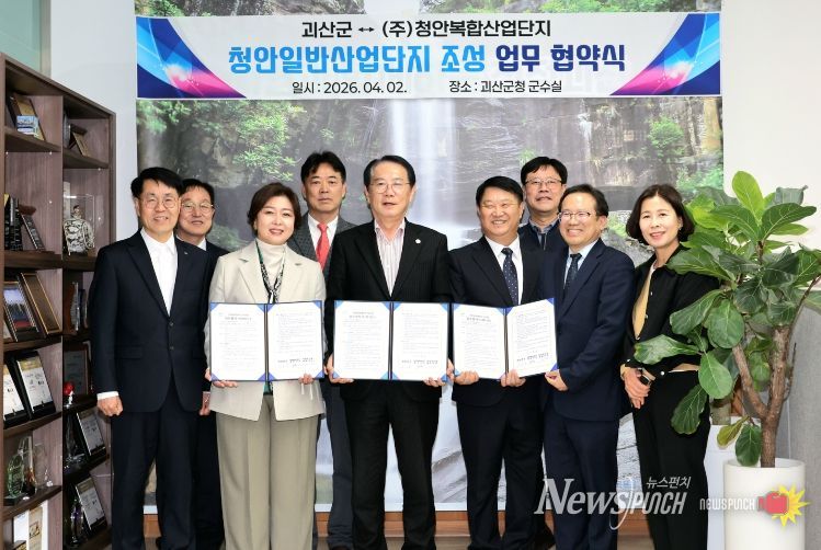 뉴스펀치 이현승 기자 | 충북 괴산군은 2일 군청 집무실에서 ㈜청안복합산업단지와 총 3,000억 원 규모의 '청안일반산업단지 조성' 업무협약(MOU)을 체결했다.