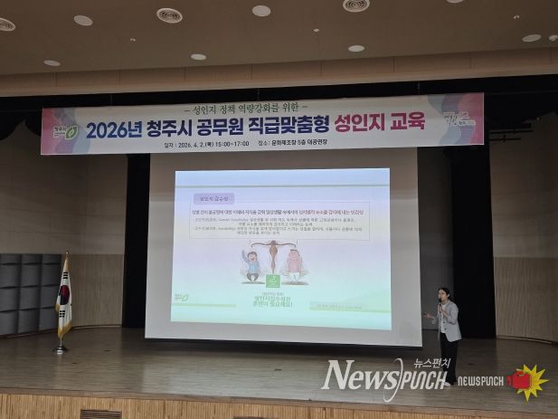 뉴스펀치 이현승 기자 | 청주시는 2일 한국공예관 5층 공연장에서 6급 이하 공무원 300여명을 대상으로 성인지 역량 강화를 위한 직급 맞춤형 교육을 실시했다.