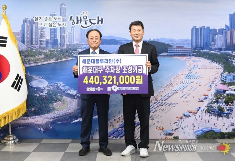 뉴스펀치 김윤걸 기자 | 해운대블루라인파크(회장 이근철, 대표이사 배종진)가 3월 31일 해운대구(구청장 김성수)에 주차장 조성기금 4억 4천만 원을 기탁했다.