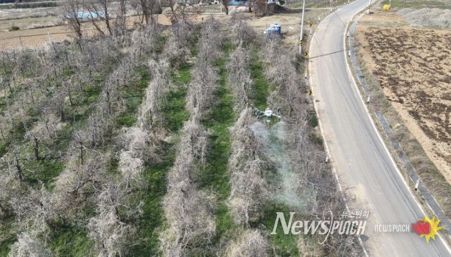 뉴스펀치 이현승 기자 | 예산군농업기술센터는 과수화상병 사전 예방을 위해 사과·배 미관리 과원을 대상으로 드론을 활용한 1차 방제 작업을 실시했다고 밝혔다.
