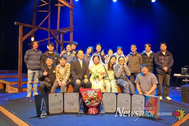 뉴스펀치 조평훈 기자 | 태백시 극단 동그라미의 연극 ‘막장의 봄’이 제43회 강원연극제에서 은상을 수상하고, 개인상 부문에서는 희곡상(이진아), 우수연기상(홍현정), 무대예술상(무대예술팀)을 함께 수상하며 4관왕의 성과를 거두었다.
