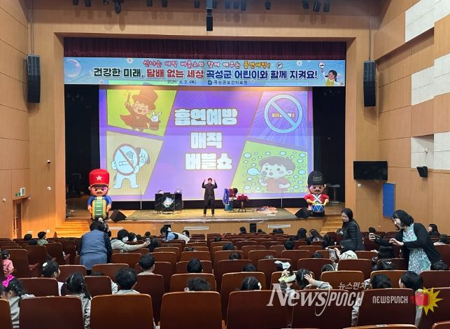 뉴스펀치 이승배 기자 | 국성군이 지난 2일 레저문화센터 동악아트홀에서 관내 어린이들을 대상으로‘흡연예방 매직버블쇼’를 개최했다.