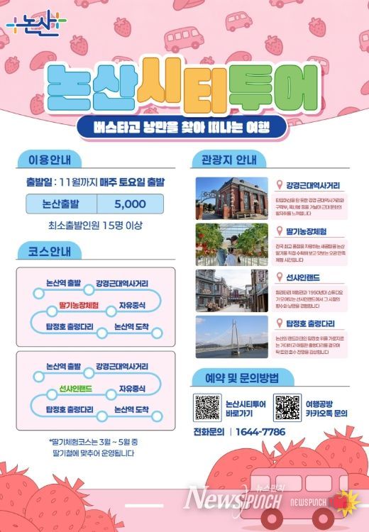 뉴스펀치 이현승 기자 | 논산시가 도시를 하나의 관광 코스로 즐길 수 있는 ‘논산 시티투어버스’를 오는 4월 4일부터 시범 운영한다.