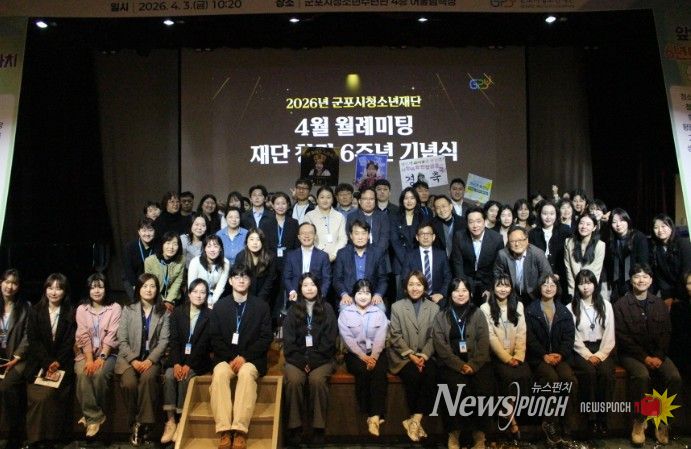 뉴스펀치 박상훈 기자 | 군포시청소년재단은 4월 3일 군포시청소년수련관 청소년어울림극장에서 4월 월례미팅을 열고, 창립 6주년을 맞아 미래도약 의지를 다지는 자리를 마련했다. 이날 행사에는 군포시청소년재단 임직원, 화용선차예문화연구소 등 80여 명이 참석했다.