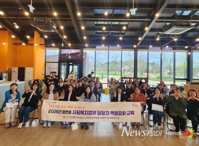 뉴스펀치 김용희 기자 | 순천시는 지난달 31일 순천만국가정원 워케이션 센터와 테라피가든에서 24개 읍면동 사회복지업무 담당자 40여 명을 대상으로 ‘2026년 역량강화 교육’을 실시했다고 밝혔다.