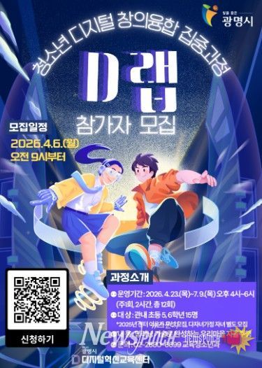 뉴스펀치 박상훈 기자 | 광명시 디지털혁신교육센터가 지역 청소년들의 디지털 창의성과 인공지능(AI) 역량을 강화하기 위한 장기 교육 과정인 ‘2026 청소년 디지털 창의융합 집중과정 디(D)랩’ 참가자를 모집한다.