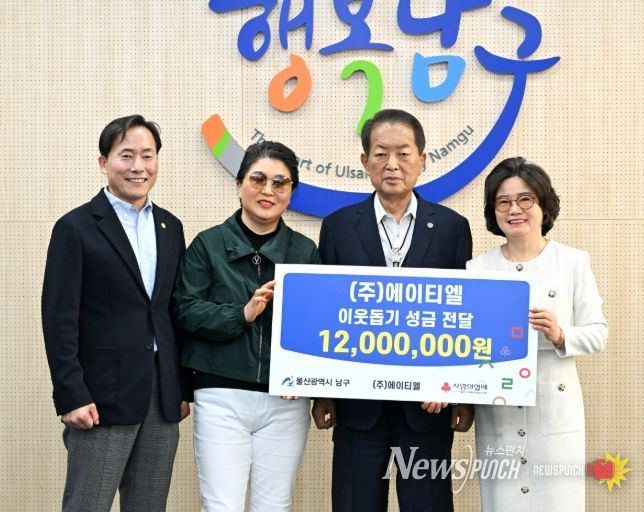 뉴스펀치 김윤걸 기자 | 남구에 소재한 운수 전문 기업 ㈜에이티엘(대표 이성익)은 3일 남구청을 통해 관내 취약계층 지원을 위한 성금 1,200만 원을 전달했다.