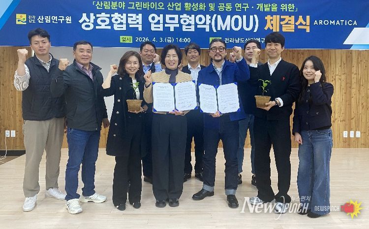 뉴스펀치 김용희 기자 | 전라남도산림연구원은 3일 ㈜아로마티카와 업무협약을 하고, 전남의 비교우위 난대 산림자원에서 추출한 에센셜오일을 활용해 케이(K)-뷰티 화장품 개발과 산업화를 본격 추진한다고 밝혔다.