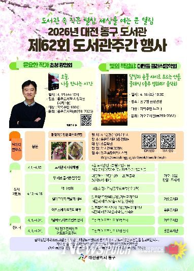 한편, 행사 내용 및 접수 등 자세한 사항은 대전 동구 공공도서관 누리집 공지사항을 통해 확인할 수 있다.