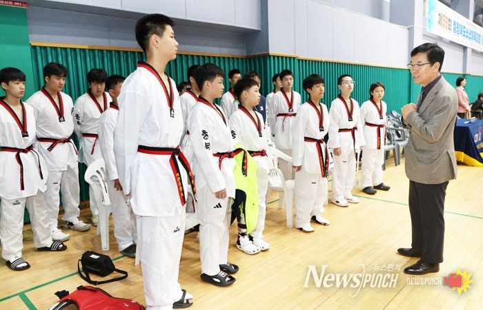 윤건영 교육감은 태권도 종목 경기가 열린 충북스포츠센터를 방문해 학생선수들을 격려하며 “자신의 한계를 넘어 당당히 도전하고 서로의 도전을 응원하는 성숙한 체육문화 속에서, 그동안의 노력과 성장을 나누는 뜻깊은 시간이 되길 바란다”라며 “이번 대회를 계기로 한층 더 도약할 여러분의 밝은 미래를 진심으로 응원한다.”라고 말했다.