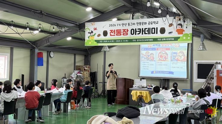 뉴스펀치 박상훈 기자 | 안산교육지원청은 오는 4월 4일부터 관내 초3~중3 학생과 동일 연령대 학교 밖 청소년을 대상으로 ‘2026 안산 동그리 전통문화 공유학교’를 운영한다. 이번 프로그램은 학생들이 직접 손으로 장을 만들며 우리 전통문화를 체험할 수 있도록 마련된 교육의 장으로, 교실을 벗어나 오감으로 체험하는 과정 속에서 학생들은 일상에서 접하기 어려운 전통문화를 자연스럽게 배우게 된다.