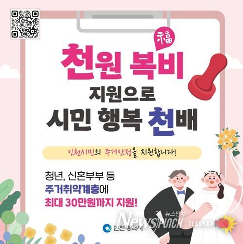 뉴스펀치 정홍균 기자 | 인천광역시는 무주택 청년과 신혼부부 등 주거취약계층의 주거비 부담을 덜어주기 위해 추진 중인‘천원 복비 지원사업’이 시민들의 주거 안정에 실질적인 도움을 주고 있다고 밝혔다.
