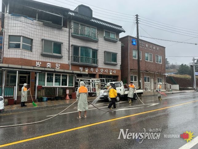 뉴스펀치 조평훈 기자 | 평창읍은 지난 4일 오전 8시 30분부터 관내 주요 시가지 일원에서 새봄맞이 시가지 물청소를 진행했다.