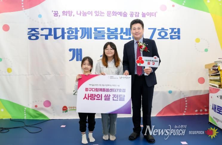 김정헌 중구청장은 “새로운 출발을 나눔으로 장식해 주신 다함께돌봄센터 7호점에 감사하다”라며 “기탁된 쌀은 기부자의 따뜻한 마음을 담아 도움이 필요한 이웃들에게 소중히 전달하겠다. 구에서도 돌봄 공백 해소와 촘촘한 복지망 구축을 위해 최선을 다하겠다”라고 말했다.