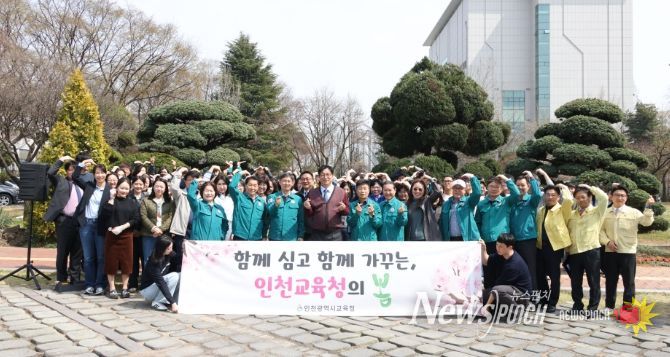 뉴스펀치 정홍균 기자 | 인천광역시교육청은 3일 청사 내 잔디광장에서 전 직원이 참여하는 봄맞이 식목 행사를 실시했다.