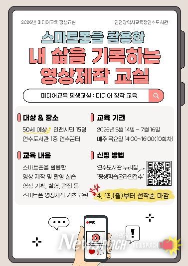 뉴스펀치 정홍균 기자 | 인천광역시교육청연수도서관은 시민들의 미디어 창작 활동 지원을 위해 2026년 미디어교육 평생교실 ‘내 삶을 기록하는 영상제작 교실’을 운영한다.