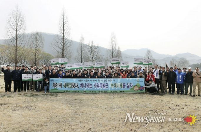 가평군은 지난 3일 자라섬 중도에서 서태원 가평군수와 김경수 가평군의회 의장, 군의원을 비롯한 주요 인사와 임업인, 봉사단, 공무원 등 150여 명이 참석한 가운데 제81회 식목일 기념 식재 행사를 개최했다.