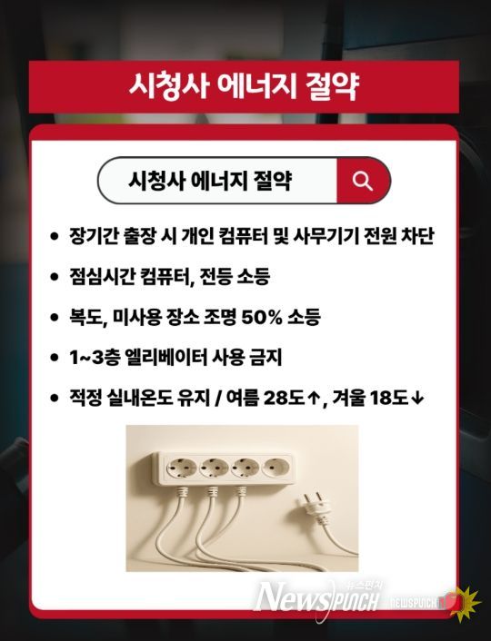 시에 따르면 구체적인 절감 대책으로 하절기 28℃ 이상, 동절기 18℃ 이하의 적정 실내온도 준수를 철저히 관리한다. 또한 복도 조명 격등 운영, 승강기 운행 제한, 중식 시간 사무실 조명 및 컴퓨터 끄기, 화장실 핸드드라이어 전원 차단 등 일상 속에서 실천 가능한 항목들을 전방위적으로 추진한다.
