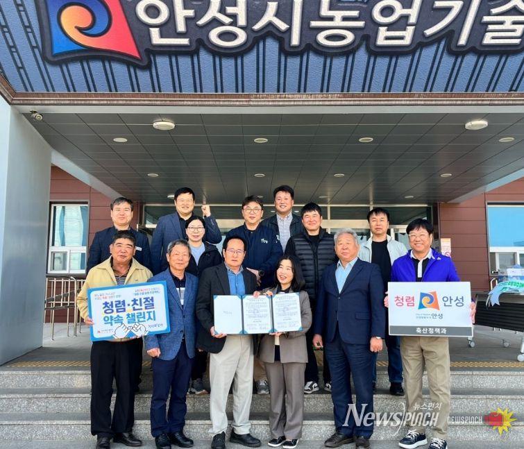 뉴스펀치 박상훈 기자 | 안성시 농업기술센터 축산정책과가 지역 축산단체들과 손잡고 투명하고 공정한 행정 실현을 위한 '청렴 행보'에 본격적으로 나섰다. 시는 지난 4월 2일, 안성시 축산단체협의회와 함께 청렴 협약식을 개최하고 신뢰받는 축산행정 구현을 위한 협력 기반을 강화했다고 밝혔다.