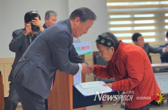 뉴스펀치 박세훈 기자 | (재)김명주 효우재단(이사장 손인상)은 지난 4일, 밀양시 산외면행정복지센터에서 ‘제16회 김명주 효우재단 효우상 시상식’을 개최하고 가곡동 거주 이희숙(여, 67세)씨에게 효우대상을 수여했다. 수상자에게는 상장과 함께 상금 1,000만원이 전달됐다.
