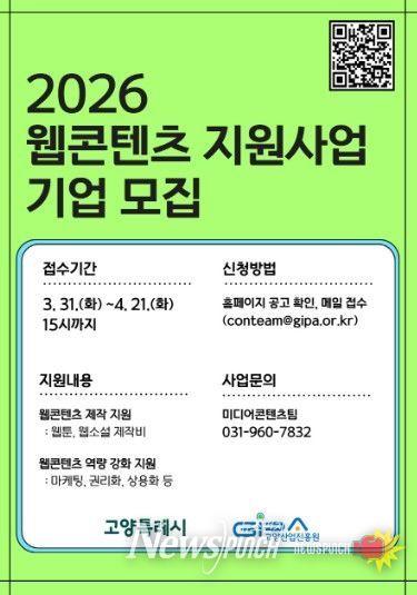 뉴스펀치 박상훈 기자 | 고양특례시와 고양산업진흥원이 오는 21일까지‘웹콘텐츠 지원사업’ 참여기업을 모집한다.