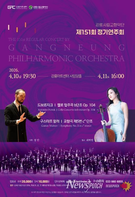 뉴스펀치 조평훈 기자 | 강릉시립교향악단은 오는 10일 오후 7시 30분과 11일 오후 4시 강릉아트센터 사임당홀에서 제151회 정기연주회를 선보인다.