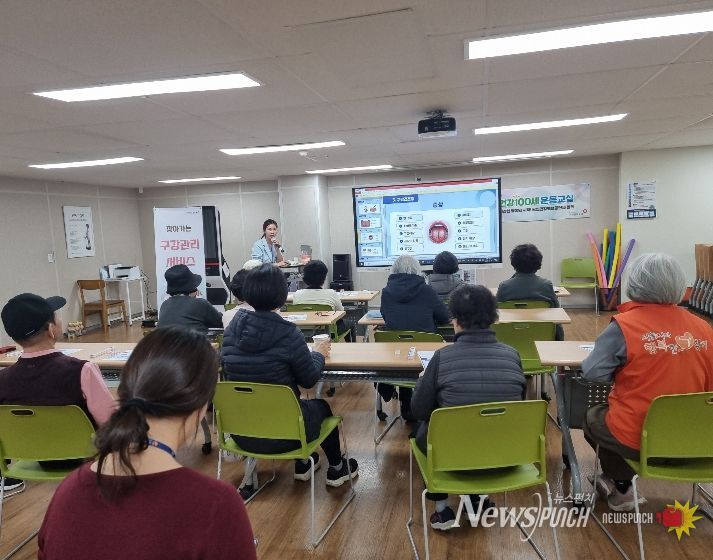 아울러 ‘찾아가는 구강관리 서비스’도 함께 운영한다. 치위생사가 치매안심센터와 복지관 등을 직접 방문해 어르신은 물론 보호자와 돌봄 종사자에게 구강위생교육을 진행하여 일상 속 구강건강 관리 역량을 높이는 데 초점을 맞췄다. 지난 27일 치매안심센터 이용자와 가족을 대상으로 진행된 교육에 참여한 한 어르신은 “생활 속에서 쉽게 실천할 수 있는 입 체조 교육이 특히 유익했다”며 소감을 전했다.