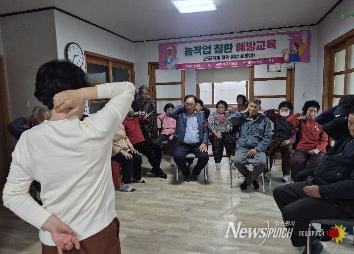 이번 교육은 4월부터 5월까지 주 1회 운영되며, 관내 마을회관(경로당) 7개소에서 추진된다. 고령 농업인에게 문제가 되고 있는 근골격계 질환에 대한 예방과 관리를 위한 운동법 중심으로 실제 농작업 전·후 따라 할 수 있는 실습 위주의 프로그램으로 마련됐다.