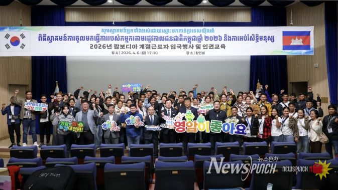 뉴스펀치 김용희 기자 | 영암군은 본격적인 농번기를 맞아 만성적인 인력난을 해소하기 위해 지난 6일 캄보디아 계절근로자 80명과 원활한 현장 소통을 지원할 언어소통도우미 1명이 입국했다고 밝혔다.
