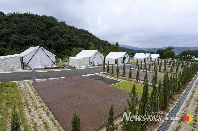 이번에 개장하는 야영장은 국토정중앙면 국토정중앙로 127 일원에 위치하며, 총 51개소로 조성됐다. 구역별로는 잔디 야영면 19개소(A구역), 데크 야영면 19개소(B구역), 신규로 조성된 오토캠핑장 야영면 8개소(C구역), 글램핑장 5개소로 구성해 이용객의 다양한 캠핑 수요를 충족할 수 있도록 했다.