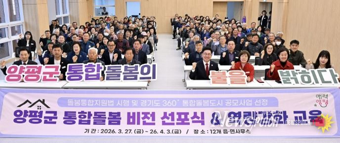 뉴스펀치 박상훈 기자 | 양평군은 ‘의료·요양 등 지역 돌봄의 통합지원에 관한 법률’ 시행일인 지난달 27일 개군면을 시작으로 4월 3일까지 진행한 ‘양평군 통합돌봄 비전 선포식 및 역량 강화 교육’을 성황리에 마무리했다고 밝혔다.