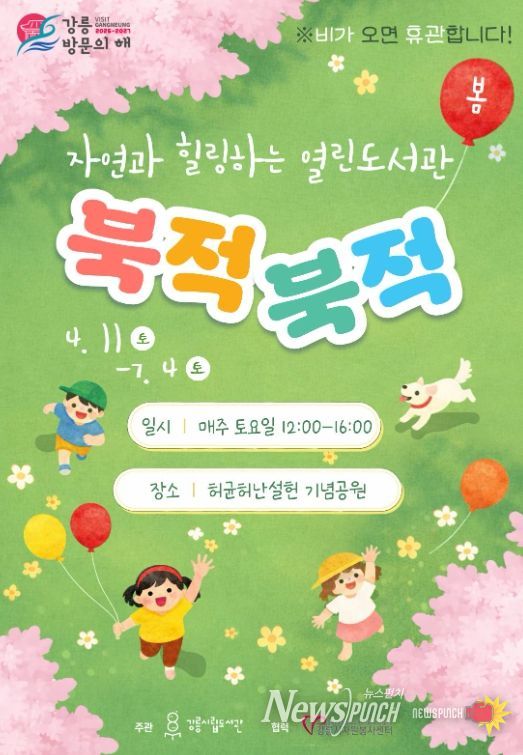 뉴스펀치 조평훈 기자 | 강릉시립도서관은 다가오는 따뜻한 봄을 맞아 오는 11일부터 7월 4일까지 허균허난설헌 기념공원에서 ‘자연과 힐링하는 열린도서관 북적북적’ 봄 시즌을 운영한다고 밝혔다.
