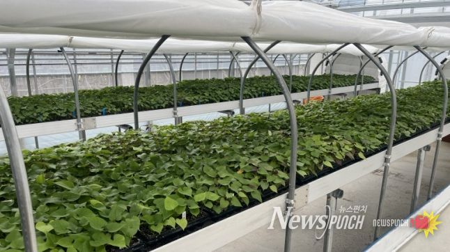 이에 따라 농업기술센터는 조직배양 기술을 이용해 고구마 무병묘를 생산하고 있다. 고구마의 생장점을 채취해 바이러스가 없는 상태의 어린 묘를 실험실에서 대량 증식한 후, 순화 과정을 거치는 방식이다.