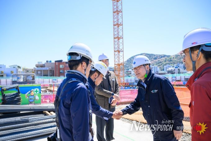 뉴스펀치 박세훈 기자 | 장충남 남해군수는 7일 청사신축 사업 현장을 방문해 공사 진행 상황과 안전 관리 실태를 점검했다.