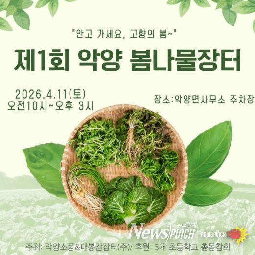 뉴스펀치 박세훈 기자 | 하동 악양에서 고향을 찾은 향우들에게 ‘고향의 맛’을 전하는 특별한 장터가 열린다. 오는 4월 11일, 악양면사무소 주차장에서 ‘제1회 봄나물 장터’가 펼쳐진다.