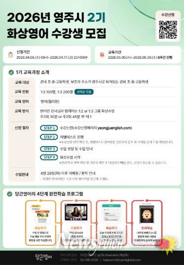 뉴스펀치 박세훈 기자 | 영주시는 4월 8일부터 17일까지 ‘2026년 원어민 사이버 화상영어’ 제2기 수강생을 선착순으로 모집한다.