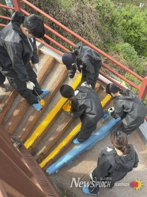 참여자들은 계단 주변의 이물질을 제거하고 밝은 색상으로 도색 작업을 진행해 어둡고 낡았던 골목 분위기를 한층 밝고 쾌적하게 개선했다. 특히 처음 봉사활동에 참여한 청년들도 적극적으로 작업에 참여하며 현장에 활기를 더했다.
