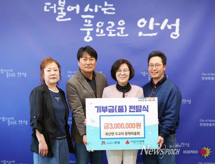 뉴스펀치 박상훈 기자 | 안성시 죽산면 두교리 동막마을회가 지역사회 발전과 복지 증진을 위해 현금 300만 원을 안성시에 기부했다.