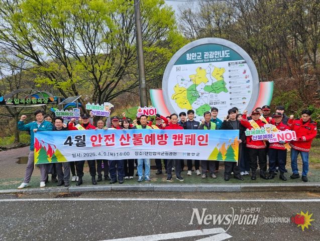뉴스펀치 박세훈 기자 | 함안군은 지난 9일 산인면 입곡군립공원 일원에서 ‘산불 예방’을 주제로 4월 안전점검의 날 합동 캠페인을 실시했다고 밝혔다.