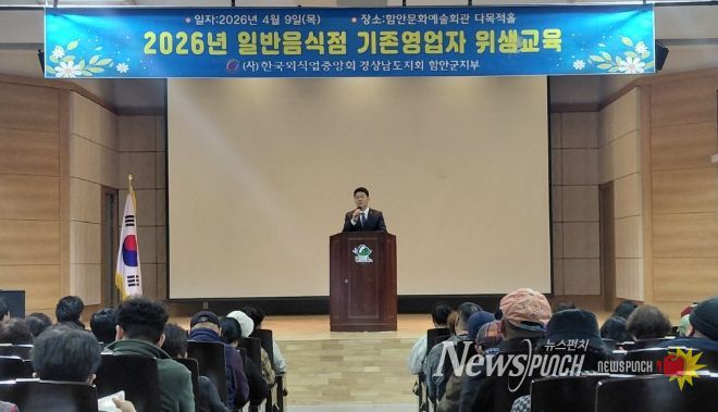 뉴스펀치 박세훈 기자 | 함안군은 지난 9일부터 10일까지 이틀간 함안문화예술회관과 칠원읍사무소에서 관내 일반음식점 영업자 300여 명을 대상으로 ‘2026년도 기존 영업자 식품 위생교육’을 실시했다고 밝혔다.