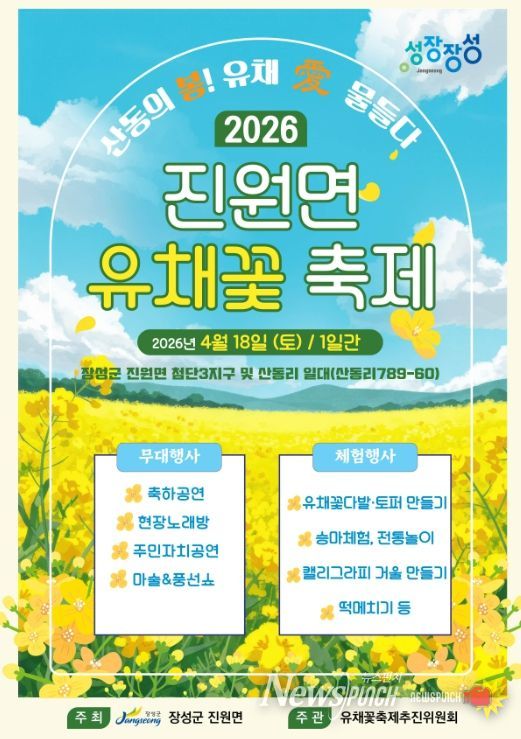 뉴스펀치 김용희 기자 | 장성군 진원면 유채꽃 축제가 오는 18일 산동리에서 열린다.